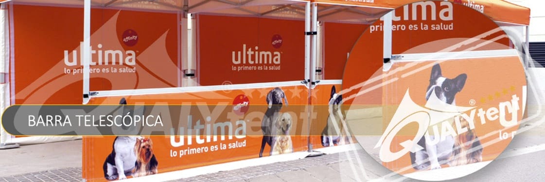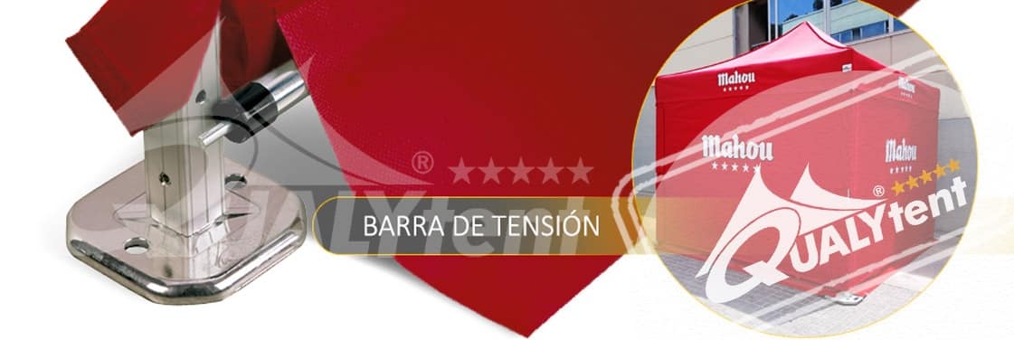 La barra de tensión QUALYTENT consigue una excelente tensión, sujeción y fijación en las paredes. Cuando las paredes son rotuladas aportan una imagen inmejorable. En estos enlaces, a nuestras fichas técnicas, aparte de sus características, pueden ver su instalación: