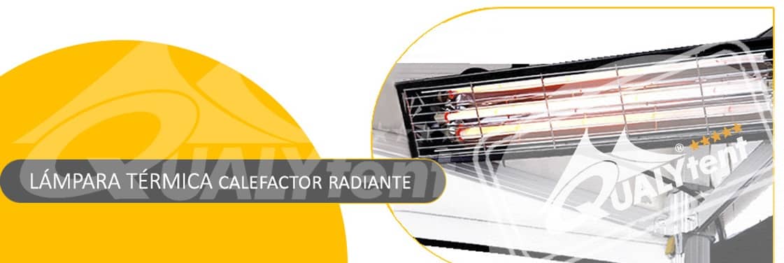 Lámpara térmica de 1000 W, calefacción radiante. Fijada mediante correas a la estructura de la carpa. Vean nuestra ficha técnica para más información.