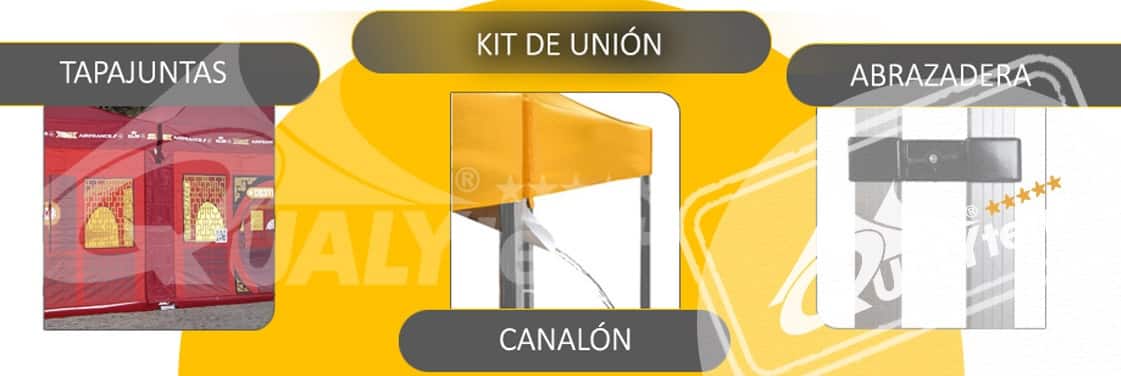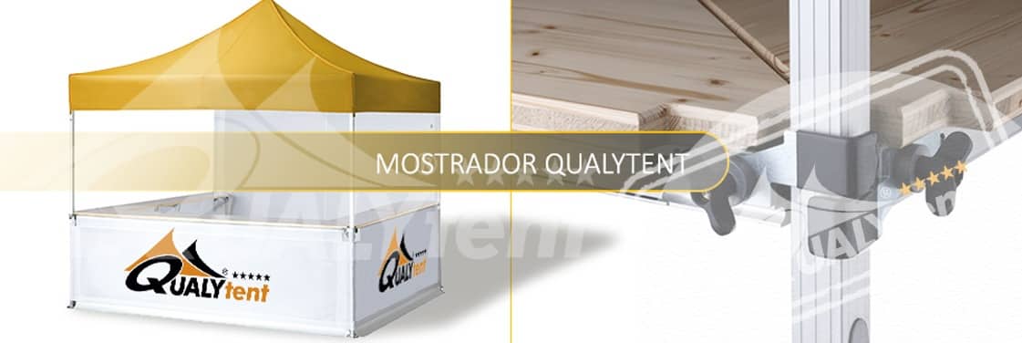 En Carpas Qualytent, fabricantes europeos, disponemos de los complementos y accesorios ideales para su carpa plegable. Como los mostradores para hacer de su carpa un punto de venta o de información, los pesos y el kit de unión para un montaje seguro….