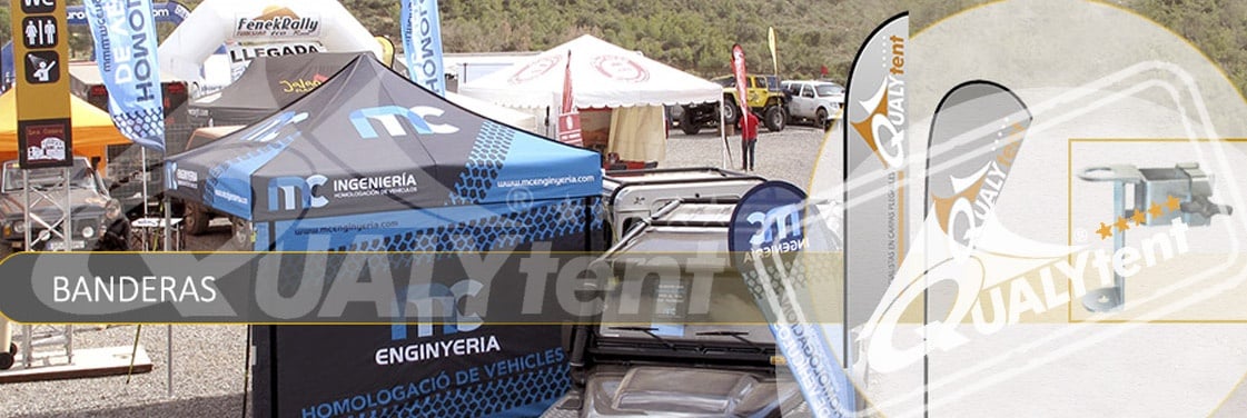QUALYTENT dispone de dos tipos de banderas, los modelos SURF y GOTA, de cinco diferentes tamaños para poder lucir su imagen. Podrá incorporar las banderas mediante una abrazadera en la estructura de la carpa o escoger entre 5 opciones de bases independientes. Tejido 100% poliéster de 115gr/m2. Customización digital a 1 cara. Más información en nuestra ficha técnica.