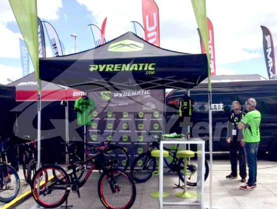 De nuevo os mostramos otro de nuestros trabajos que combinan, tanto la rotulación digital full print, como la estampación por calor. Para la empresa Pyrenatic realizamos esta carpa plegable de 3x3m Premium, destinada a las varias ferias y eventos deportivos a los que acuden. Cumplimos su encargo, una carpa publicitaria a su altura.