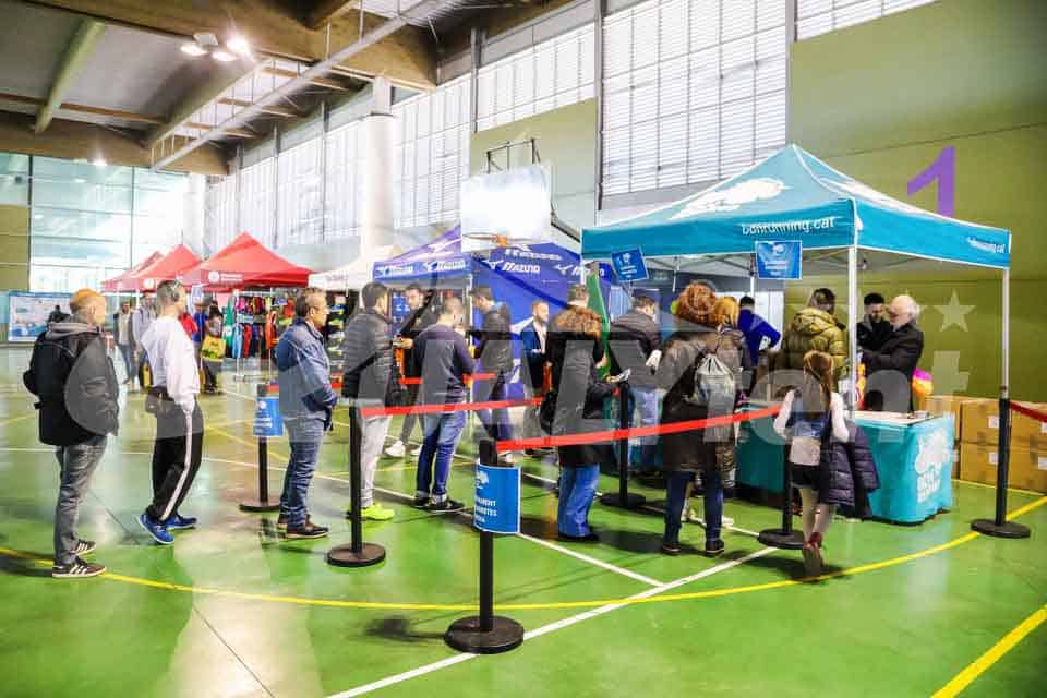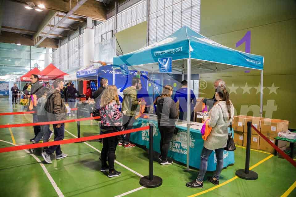 Y no solamente es una carpa que rinde a la perfección en exterior. Cuando contamos con la protección de un pabellón, como en este caso, es el perfecto stand de feria, que nos permite entregar dorsales o merchandising. La identificación y visualización de su marca, es un valor añadido para su negocio.
