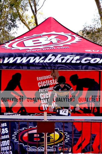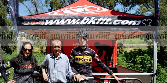 Esta la carpa plegable de 3x3m S-45 Premium realizada, en impresión digital full print, para Bkfit, en Granada. Un espacio personalizado con los logos de la empresa, pensado para llamar la atención en los eventos deportivos a los que acuden.