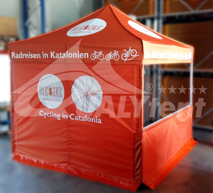 Para Olebike realizamos esta carpa plegable de 3x3m Premium para la promoción de sus actividades. Centrados en publicitar sus rutas turísticas en bicicleta, buscan en ferias de turismo y deportes dar a conocer sus recorridos. La carpa que les entregamos debía estar a la altura.