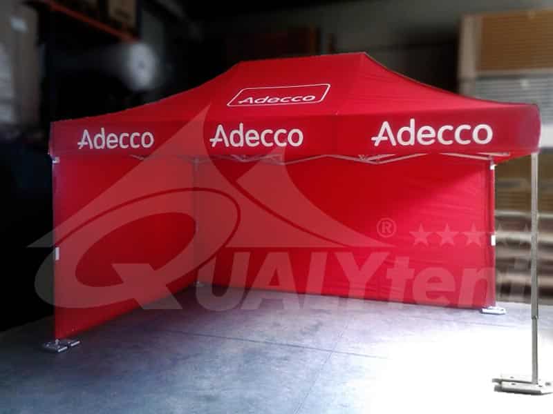 Y aquí nos encontramos con una carpa plegable de 4.5×3m Premium en color rojo realizada para Adecco. Un carpa perfecta para las acciones o eventos deportivos en los que la empresa colabora o patrocina.