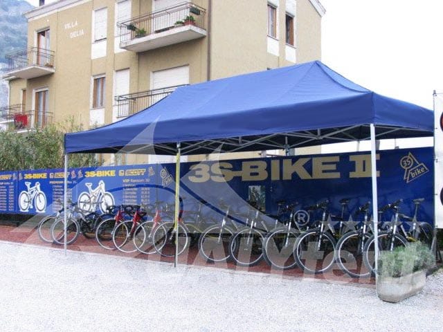Como nos presentamos en una feria o en un evento, es crucial para esa impresión positiva. O como cuidamos de nuestro producto cuando estamos de cara al público. Esta empresa de bicicletas confío en nuestras carpas plegables, en concreto en una 6×3 QT S-45 Premium azul. El resultado es un espacio diáfano y protegido de las inclemencias meteorológicas.