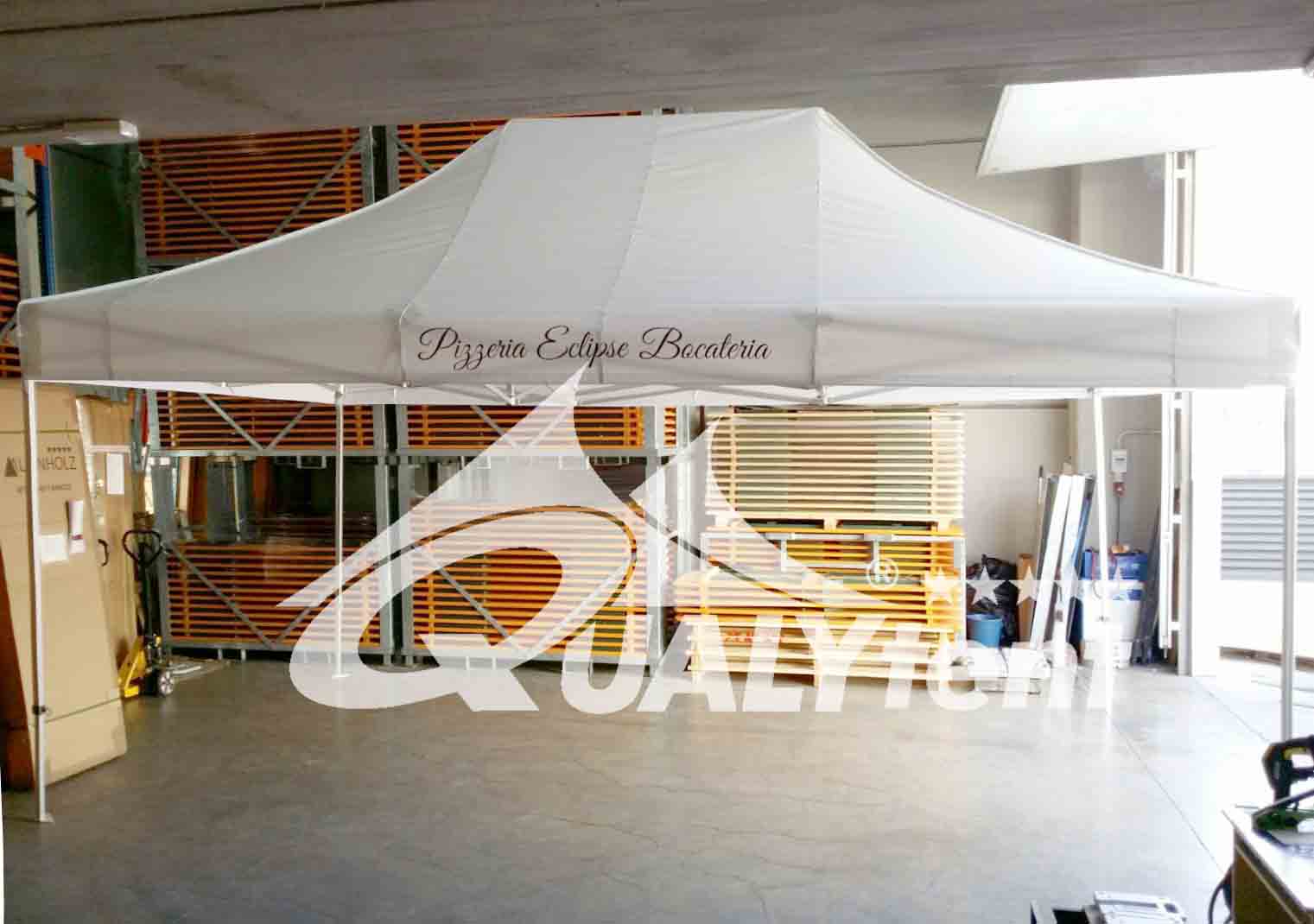 En este caso, la carpa de 4x6m Premium entregada, contaba con la personalización del cliente, la Pizzería Eclipse Bocatería. Una perfecta forma de presentar su negocio a los clientes, e identificar su espacio