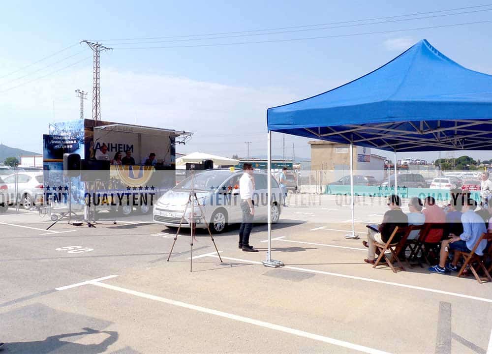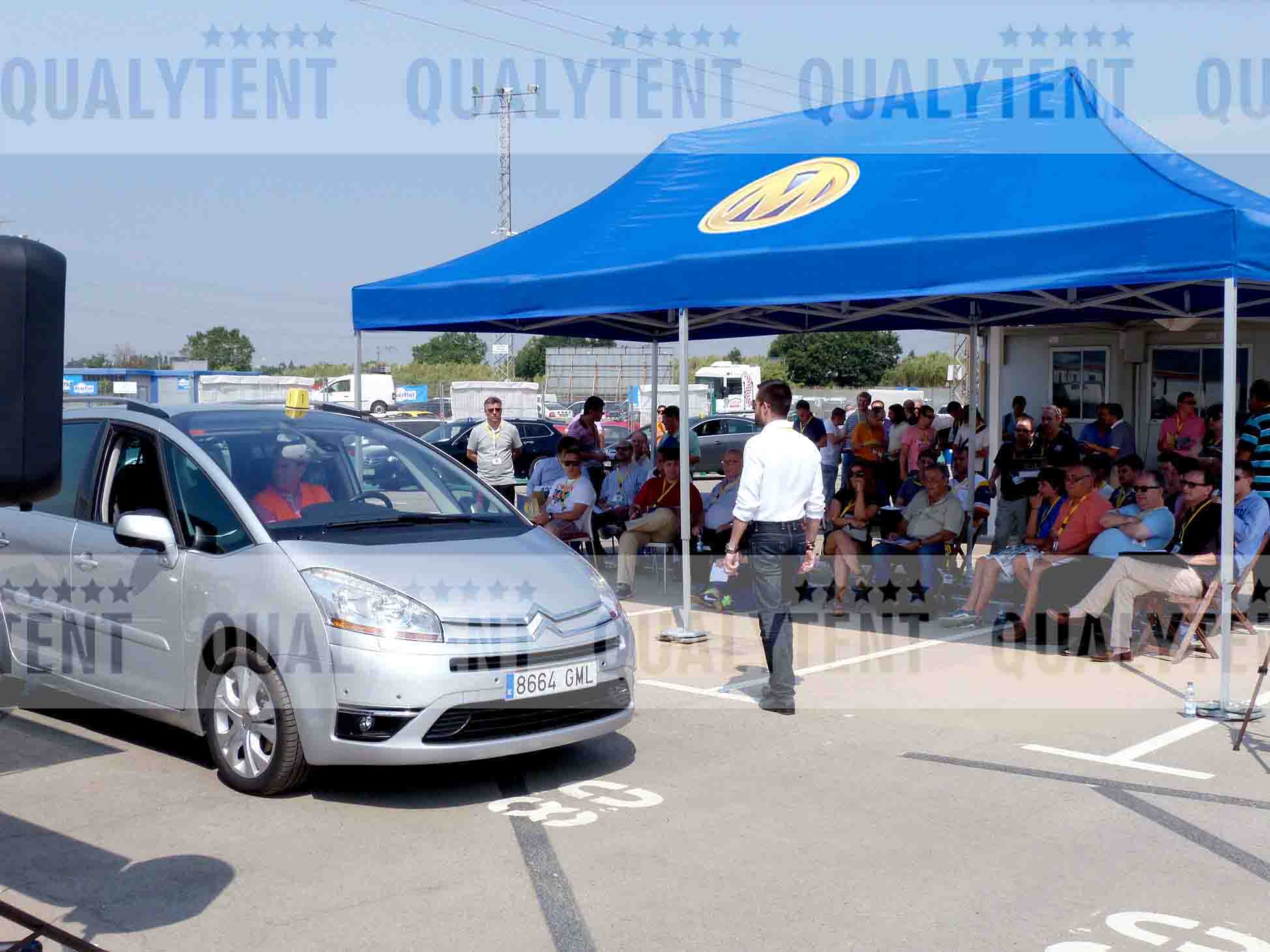 La empresa Manheim precisa, en los eventos que organiza, de un espacio diáfano para poder acomodar a sus clientes y que estén bien protegidos de las inclemencias del tiempo. Un tejido 100% impermeable con una estructura robusta para años.