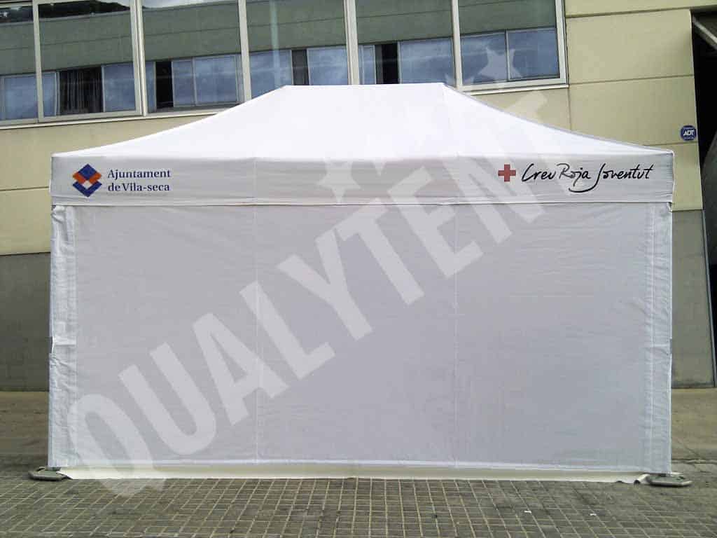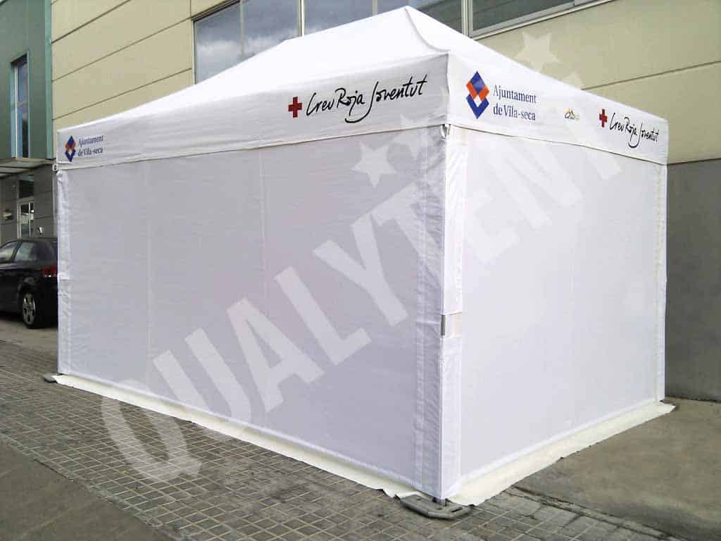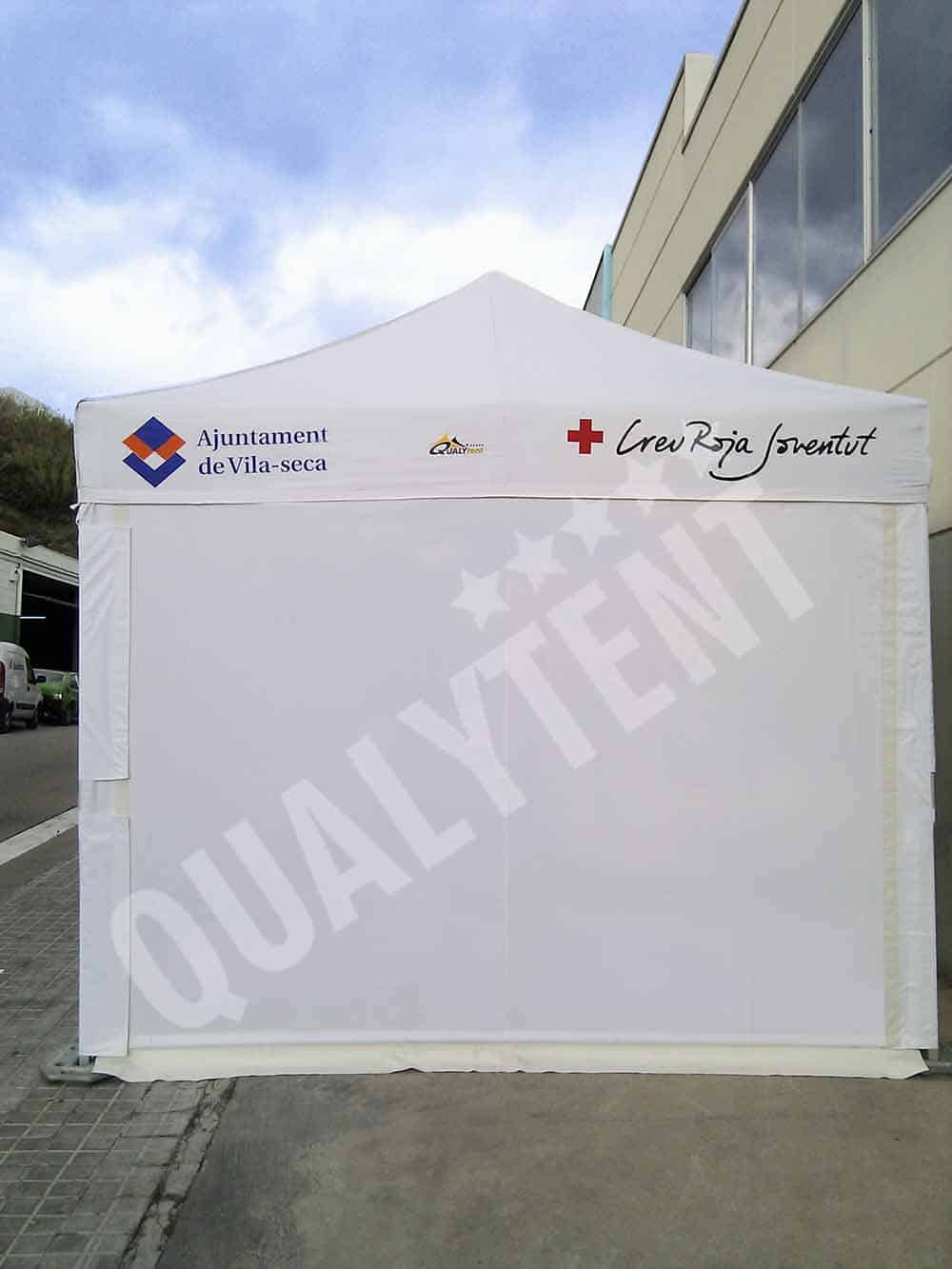 Carpas plegables Qualytent entregó a la Creu Roja Joventut de Vila-seca, una localidad de la provincia de Tarragona. Una carpa plegable blanca de 4.5x3m personalizada en el techo con los logos del ayuntamiento de la ciudad y de la Cruz Roja.