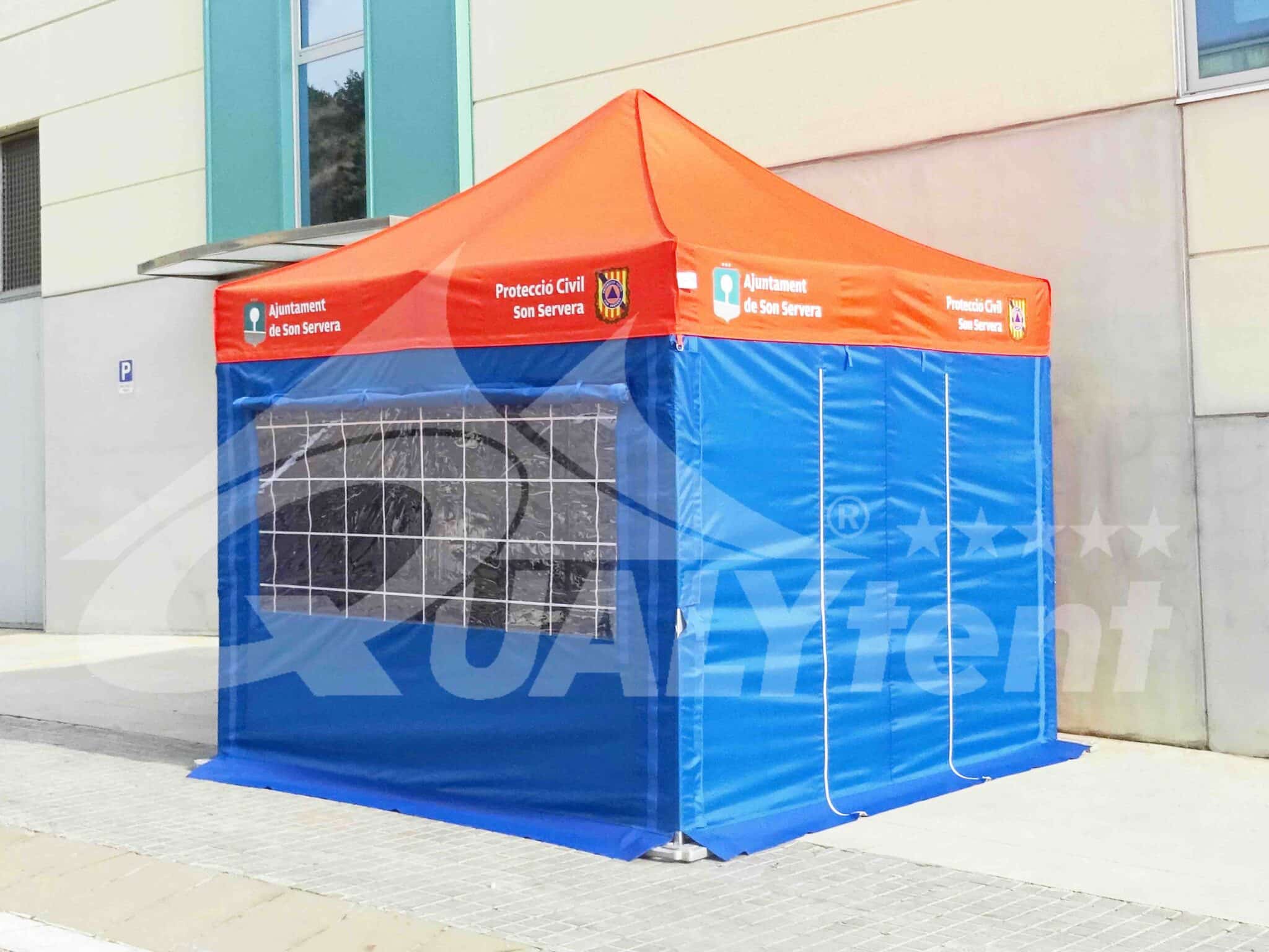 La Protección Civil de Son Servera, de Baleares, nos encargó esta carpa plegable de 3x3m del modelo Rescue. Destinada para su puesto de mando avanzado, que incluía las paredes Rescue, que están equipadas con tela mosquitera. Estas paredes permiten el cierre integral de las mismas cuando, en una intervención, es necesaria la privacidad.