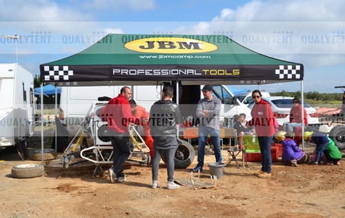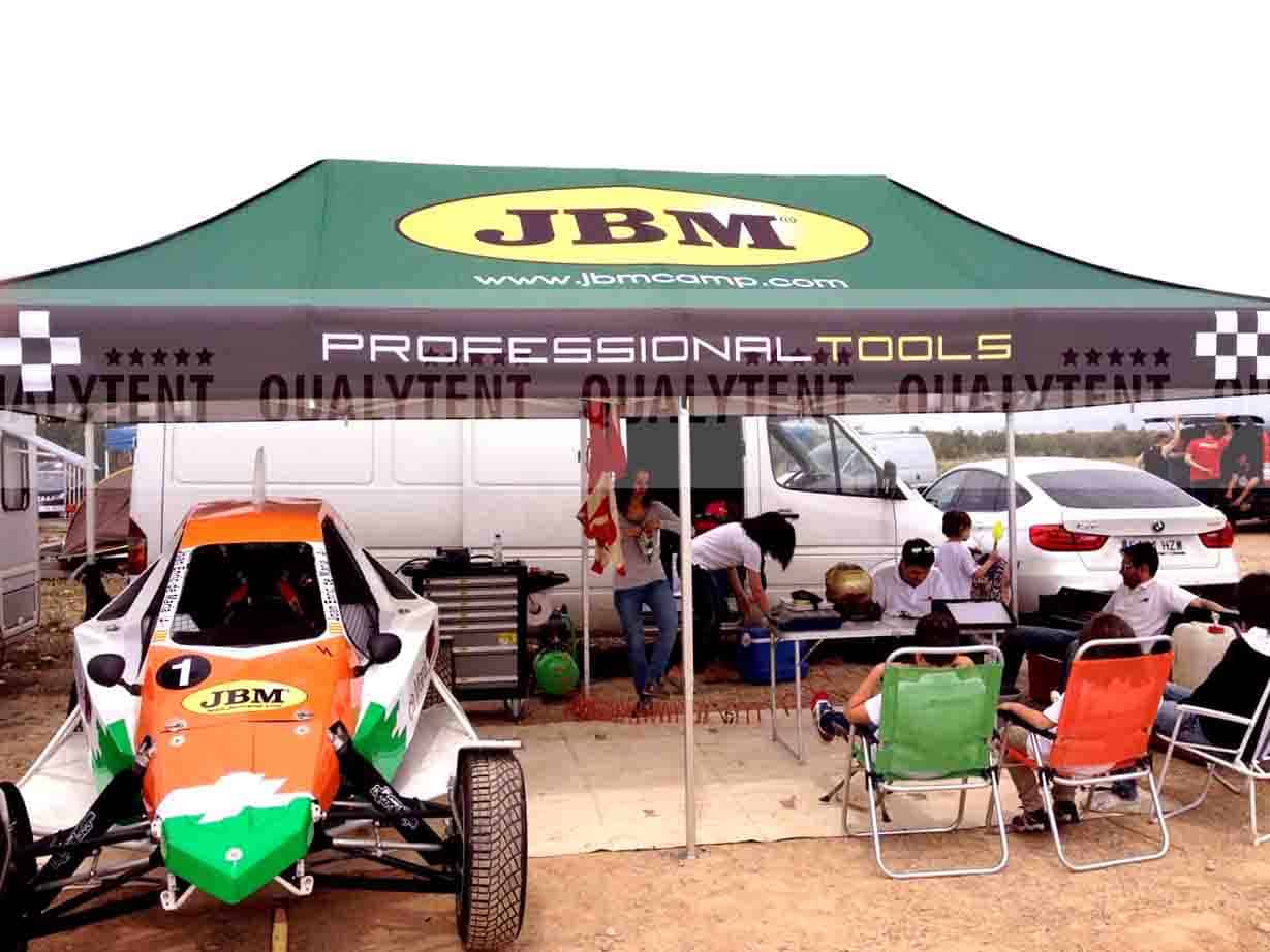 Pero además, cuidamos, con un meticuloso trabajo de preparación, las lonas y de la personalización. En la rotulación digital, imprimimos sobre la lona, y después la cosemos para que quede perfecta y bien alineada. La imagen corporativa que presentan, debe ser impecable, como es el caso de la carpa plegable de 6x3m QT S-45 Premium. Un perfecto motor home que entregamos a JBM Racing, y a los que agradecemos su confianza en nuestras carpas plegables.