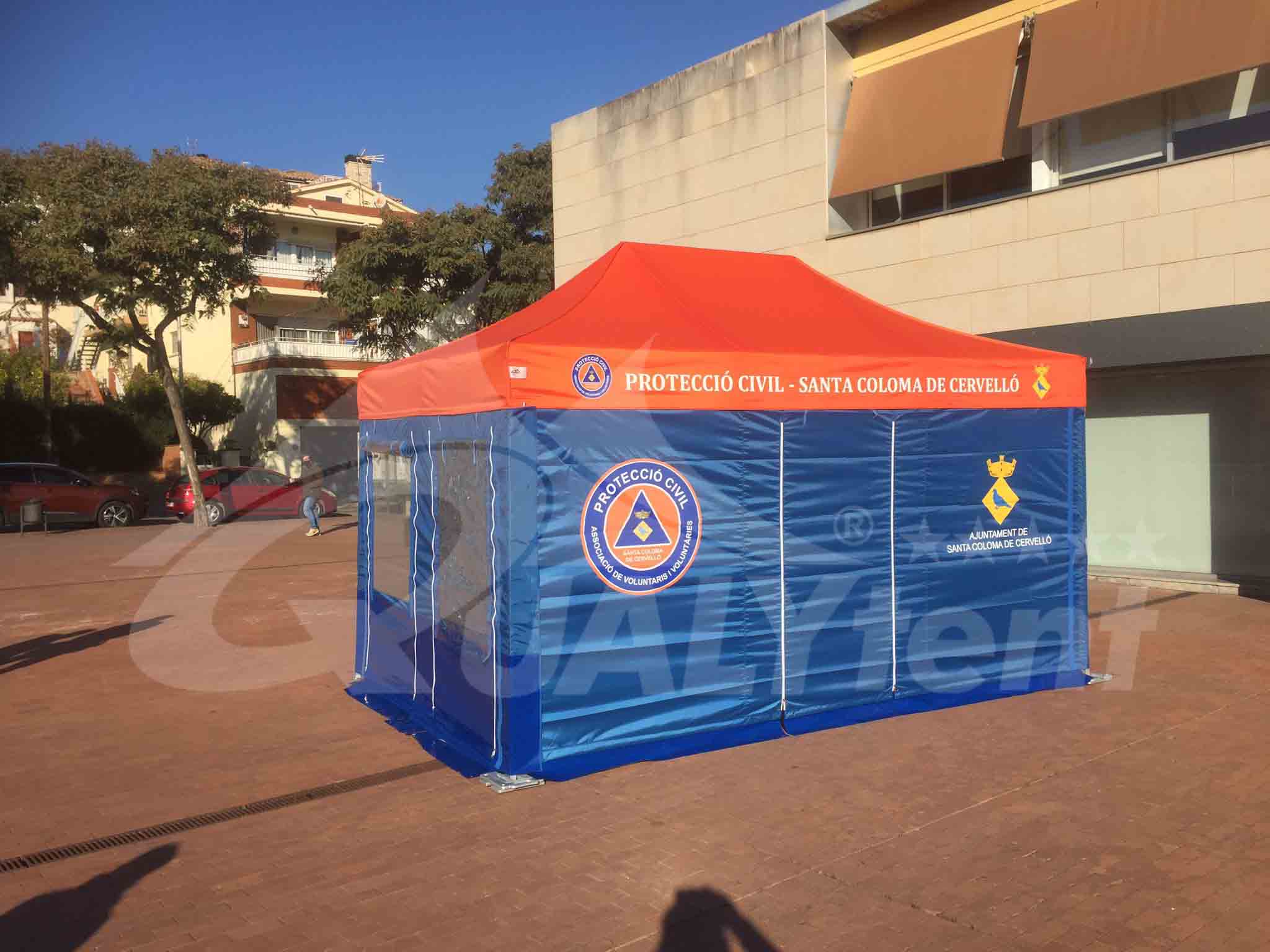 Entregamos esta carpa plegable Rescue a la Protección Civil de Santa Coloma de Cervelló. Un espacio seguro que cuenta con la personalización en techo y paredes, logrando así una perfecta visualización. La medida escogida fue la de 4.5x3m, la cual permite trabajar con espacio a los profesionales.
