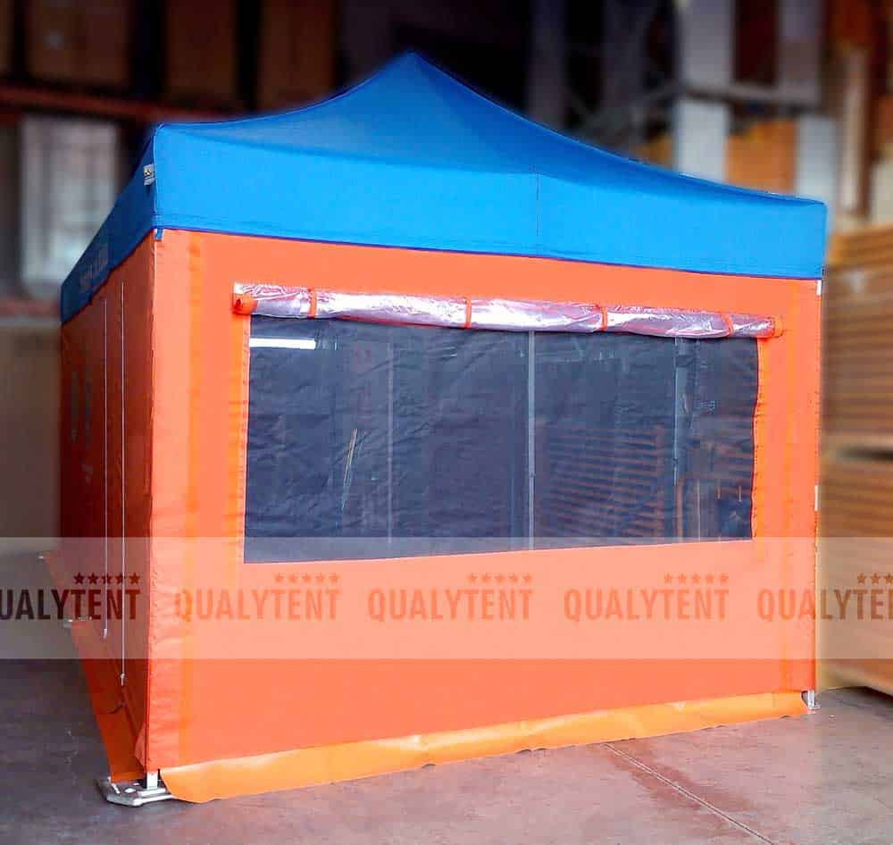 La carpa escogida para trabajar fue la 6x3m QT S-45, uno de los modelos más fuertes y resistentes de nuestra gama. Esta carpa plegable incorpora seis patas, lo que le permite una mayor estabilidad ante condiciones adversas.
