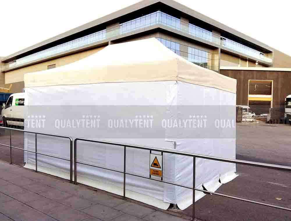 La robustez de una de nuestras carpas Premium de 3×4.5m la convierten en un espacio seguro para trabajar. Sus 55 kg de peso no impiden un montaje rápido y veloz, así como muy sencillo. Y por supuesto con un tejido 100% impermeable e ignífugo, todo con la garantía de una fabricación europea.