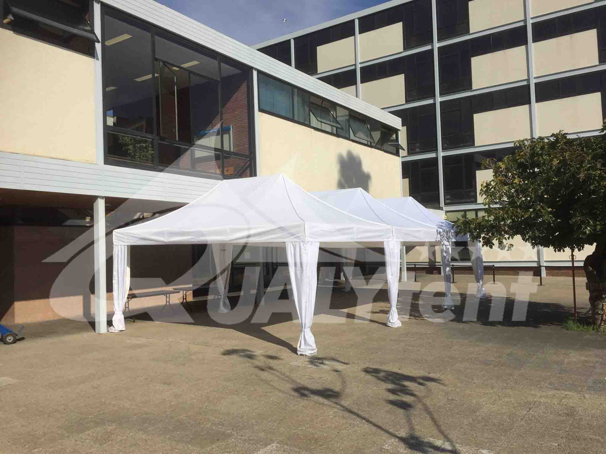 En Qualytent fabricamos carpas profesionales, pero a la vez con un acabado elegante y firme en sus lonas. Hechas a mano, ajustándolas a la perfección para conseguir un tensado perfecto. Las carpas plegables Qualytent se fabrican para durar tiempo, para montar y desmontar rápidamente y en cualquier momento. Un producto europeo con veinte años en el mercado de las carpas extensibles de calidad.