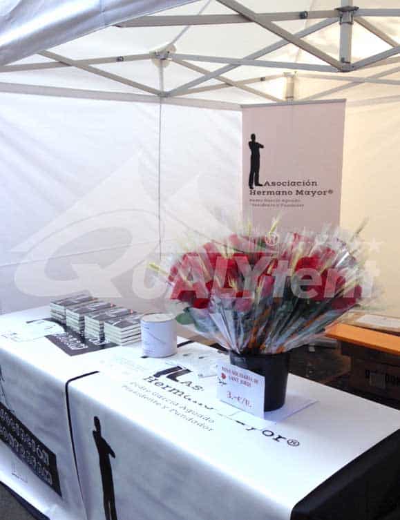 Ofrecemos carpas profesionales y seguras para ferias, como este carpa plegable de 3x3m Premium. Un espacio listo y preparado para ofrecer una atención profesional o promocional para su empresa o asociación.
