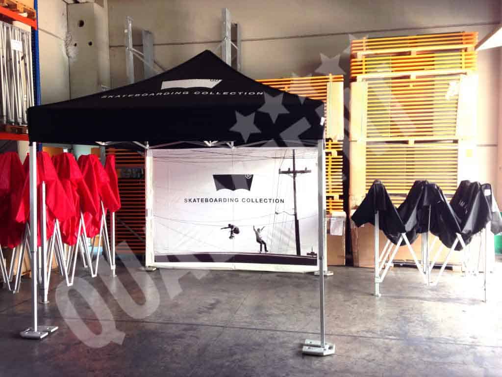 Dos carpas plegables de 3x3m Premium, esta vez con la rotulación de la marca de ropa Levi´s. En esta ocasión se debía presentar una colección nueva de ropa, con lo que trabajamos en la opción que vemos aquí.