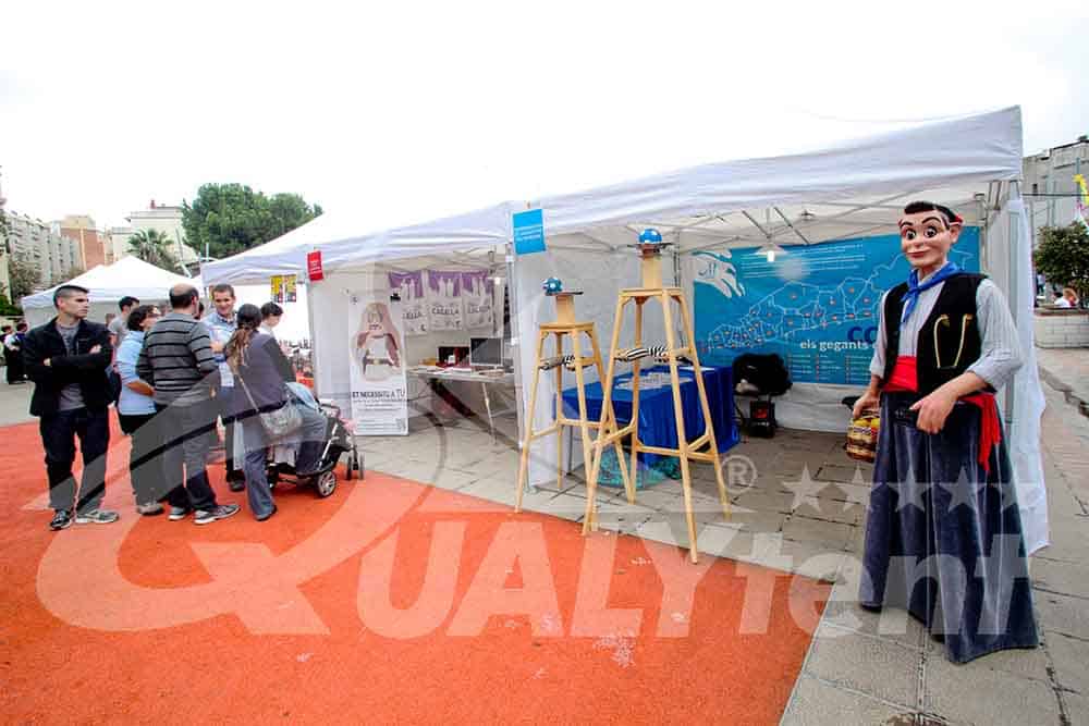En este caso, presentamos las carpas plegables de 3x3m Premium, instaladas, para la ocasión, en una concentración de asociaciones culturales. Varias de las carpas se montaron unidas, gracias a nuestro sistema de montaje modular. Este incluye accesorios como, un canalón de PVC para la lluvia, dos abrazaderas de unión y un cierre intermedio. Si el cliente lo desea, podemos facilitar paredes divisorias, consiguiendo stands individualizados.