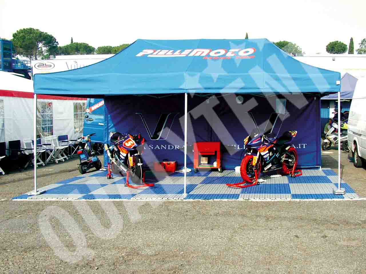 Una de nuestras carpas plegables de 6x3m Premium, en este caso destinada al mundo del motociclismo. Las competiciones de motor empiezan mucho antes de que las cámaras les enfoquen. Muchas horas de trabajo de los mecánicos para poner a punto las máquinas necesitan un espacio adecuado. Nuestras carpas ofrecen ese espacio, en diferentes medidas, y con la opción del cierre integral con las paredes. ¿Necesitan ver otras carpas para motor para convercerse?