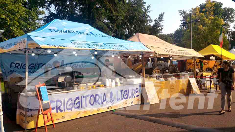 Somos especialistas en la rotulación de nuestras carpas plegables, como estas realizadas por nuestros compañeros en Italia. Impresas mediante nuestro sistema de personalización full print, que consigue llenar todo el tejido con su mensaje o colores corporativos. Este método permite imprimir toda la superficie a un precio fijo, con un resultado espectacular.