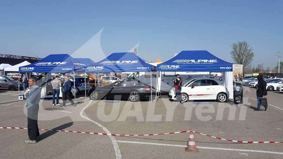 Carpas plegables fabricadas por nuestros compañeros italianos, que entregaron varias carpas plegables de 3×4.5m para Alpine. Este es uno de los eventos donde las carpas han dado sus primeros servicios.