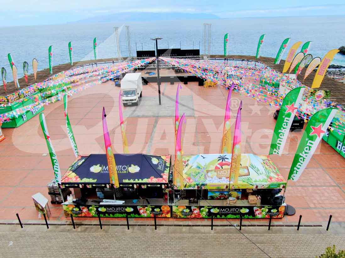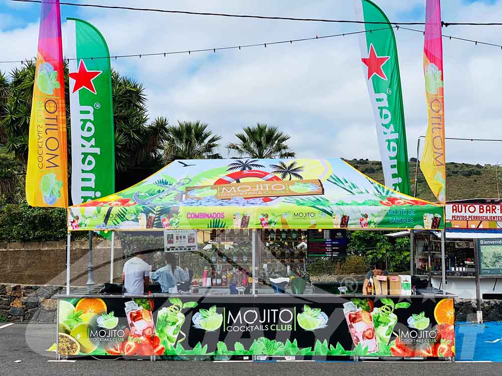 En Canarias desarrollan su actividad los profesionales de Mojito Cocktails Club desde hace bastantes años, en los cuales han confiado en nuestras carpas plegables. En los modelos Premium de 6x3m dan servicio durante todo el años en las, bien llamadas, islas afortunadas.