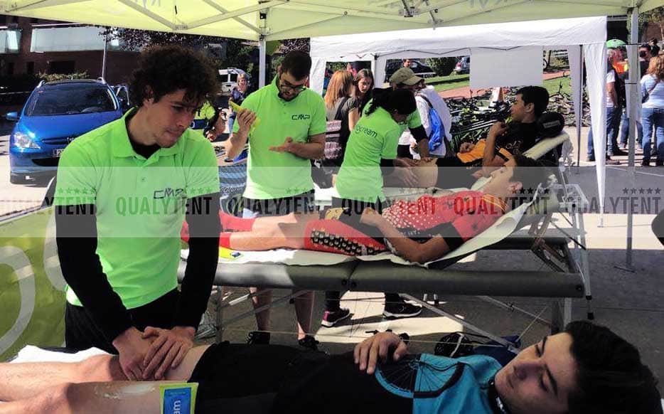 Una carpa multiuso, perfecta para cualquier actividad, ya sea exposición en ferias o para realizar masajes al finalizar una carrera. Siempre ofreciendo la mejor imagen y visualización de su negocio a la vista del público.