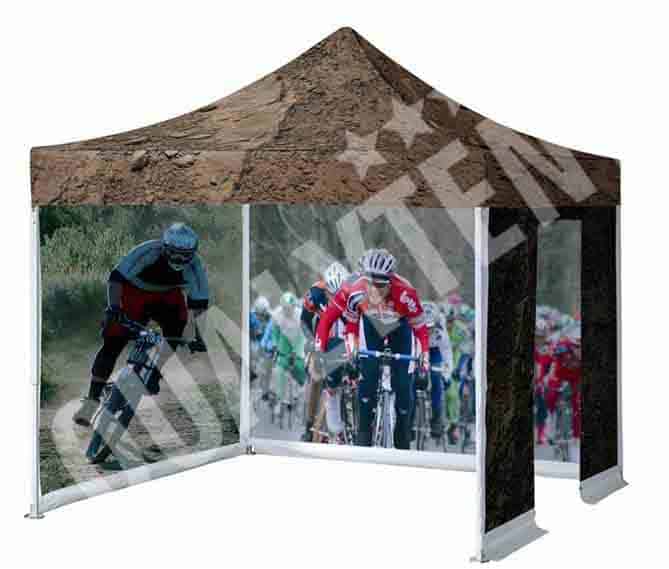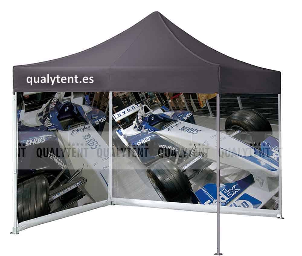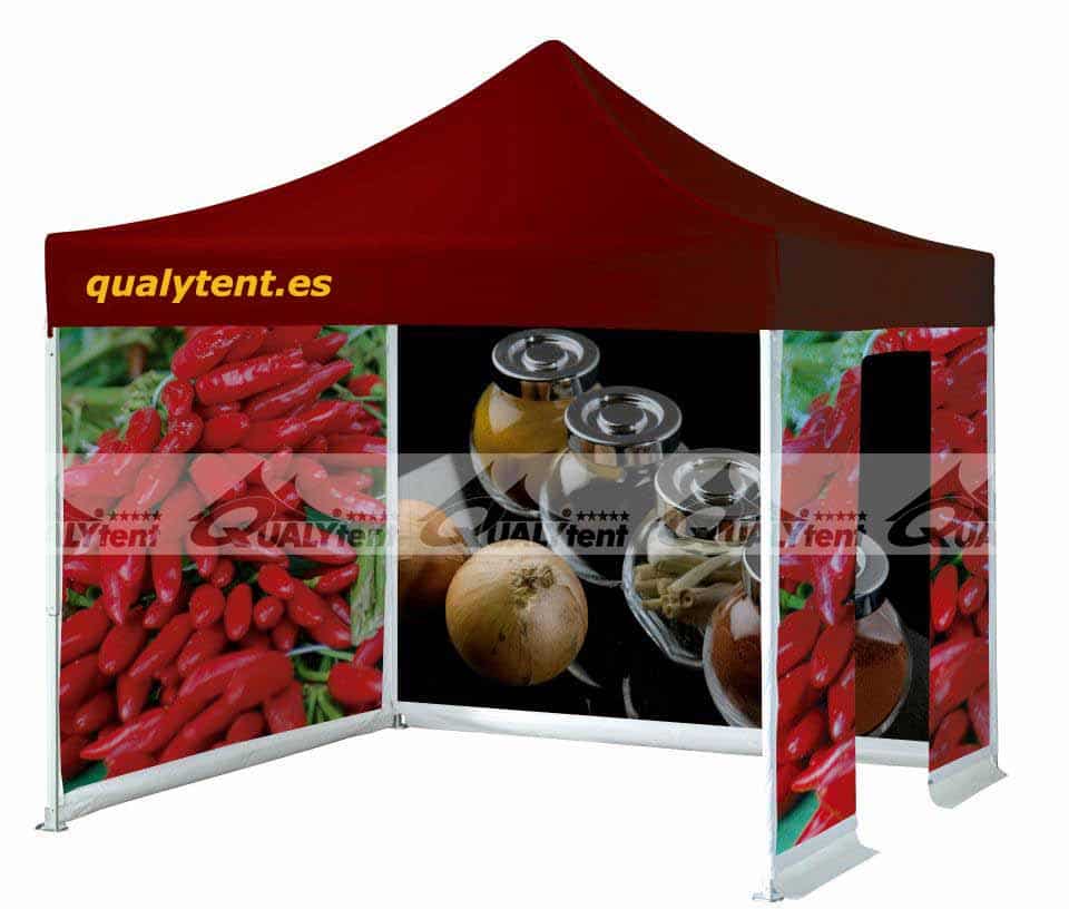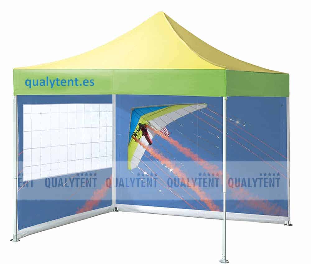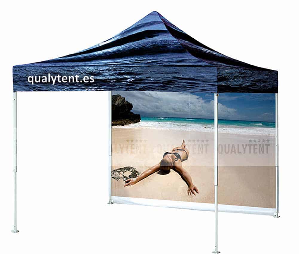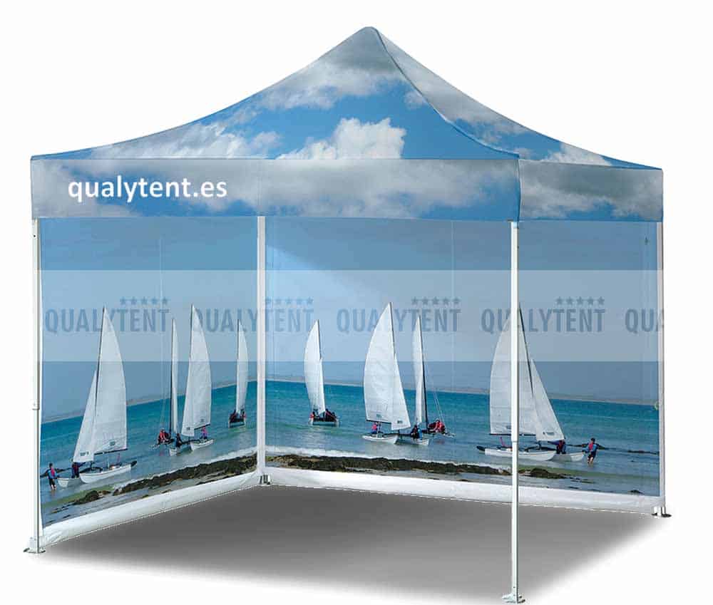 Somos especialistas en la personalización digital de nuestras carpas. Un proceso artesanal, donde se imprime la lona y después se cose, casando son precisión absoluta las imágenes una con otra. Fabricantes europeos de carpas plegables.
