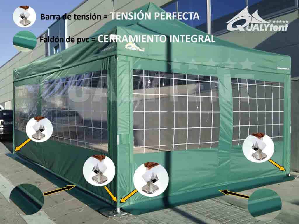 - Ventaja estética, inmejorable tensión de las paredes Qualytent.